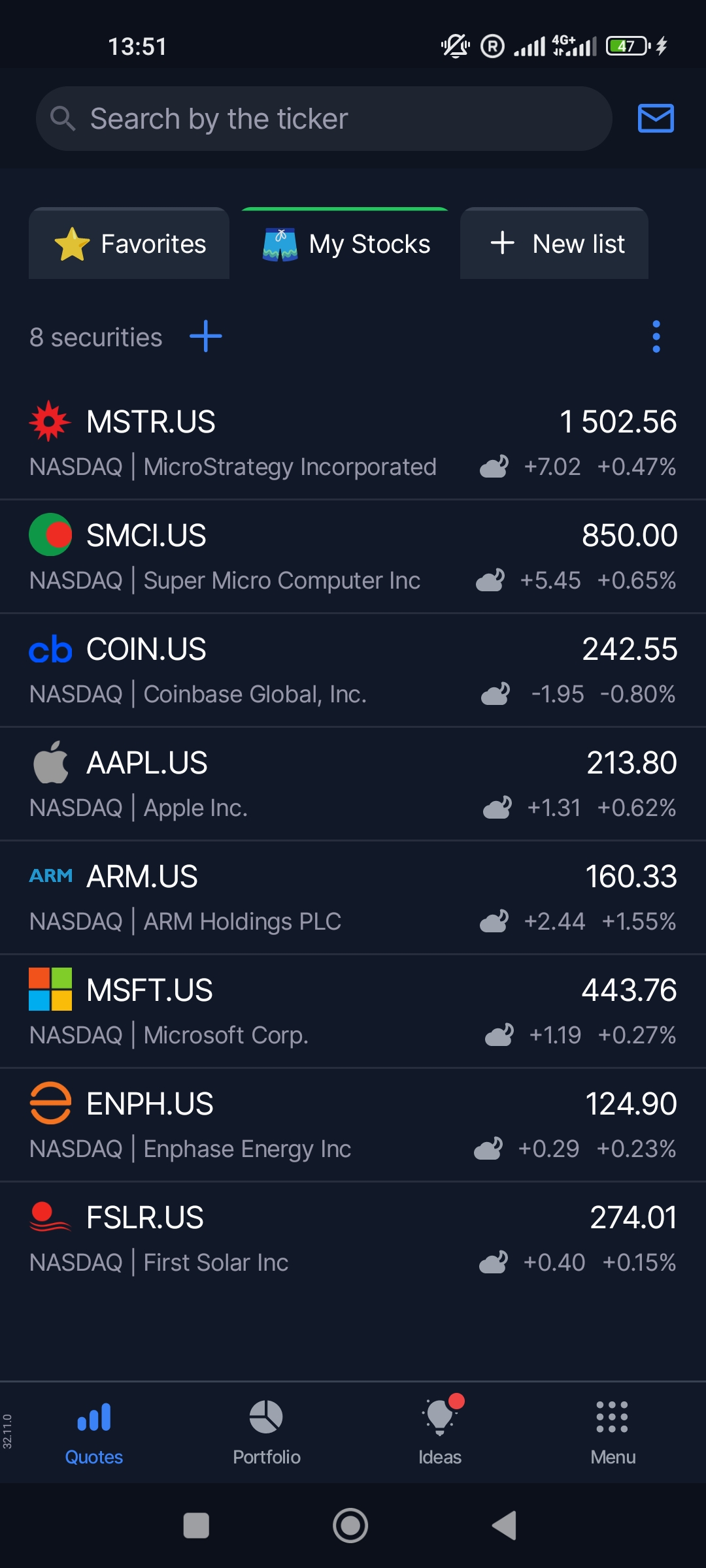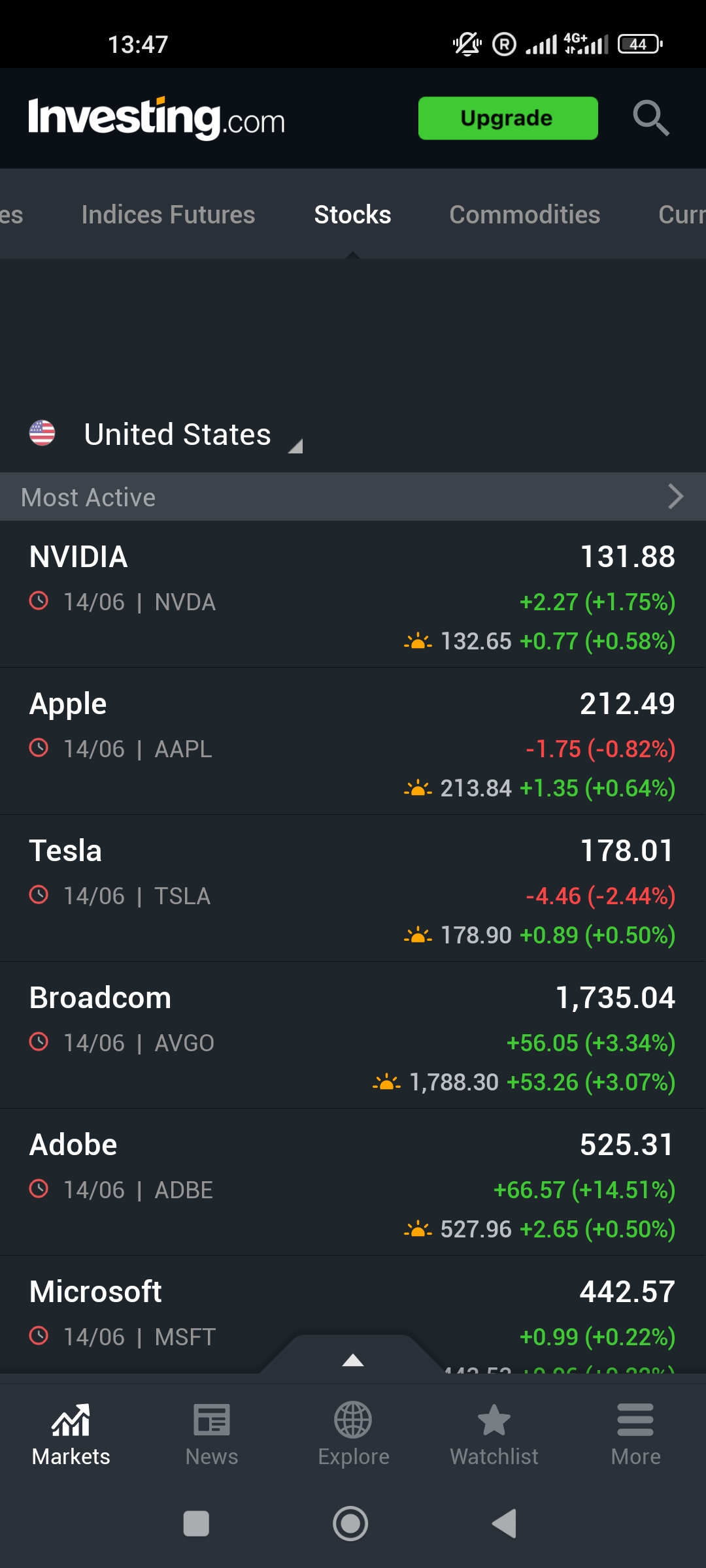 Much easier to follow stock trend when it shows it in green or red, like in the Investing.com app (screenshot attached).